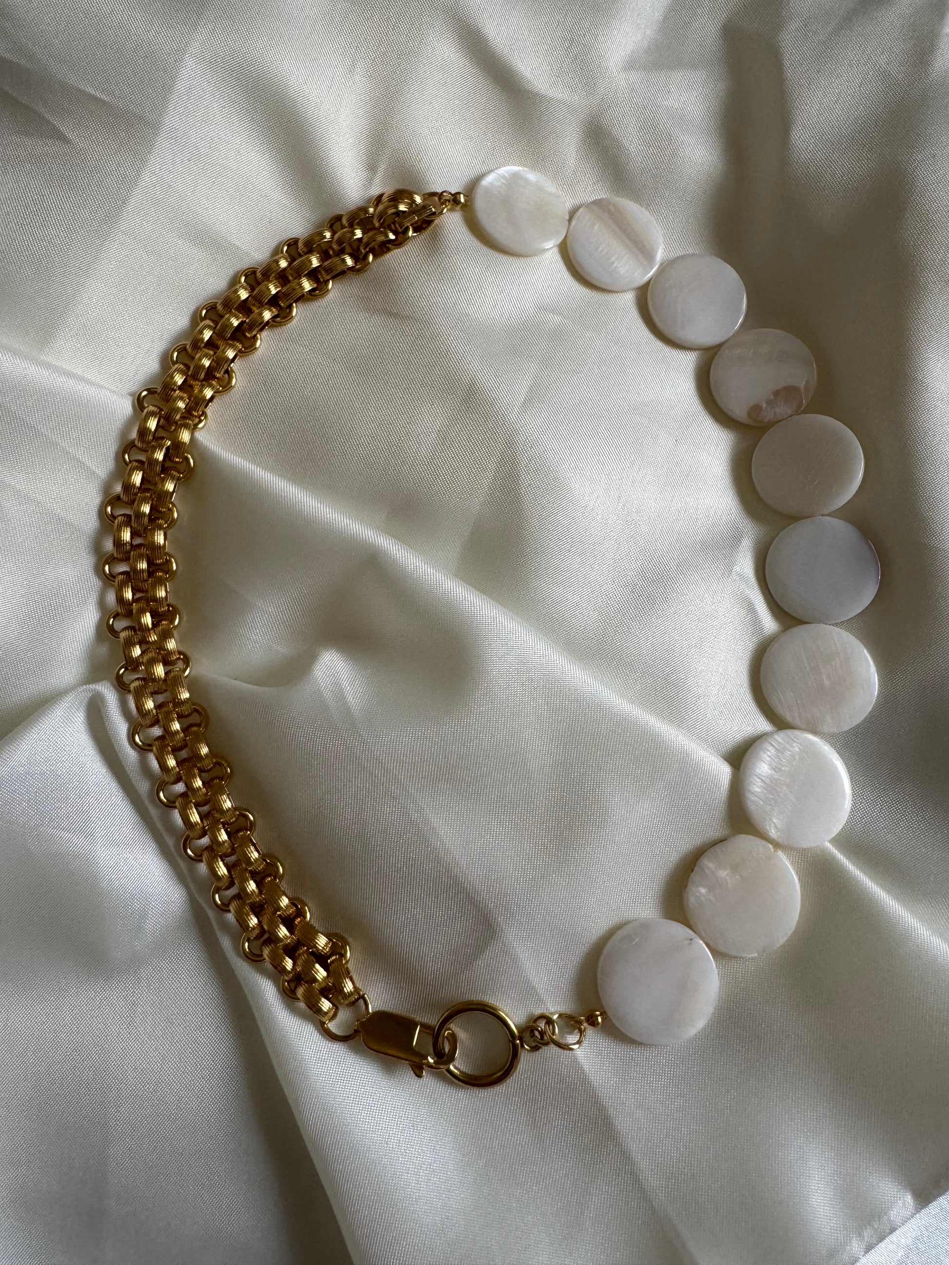 Material: Acero stainless chapado en oro 18k y nácar